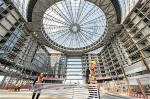 ????2月23日,在江东新区总部经济区(生态CBD)海南银行总部大楼项目现场,各项工序稳步推进,外幕墙安装已进入收尾阶段,室内精装修正全面开展。