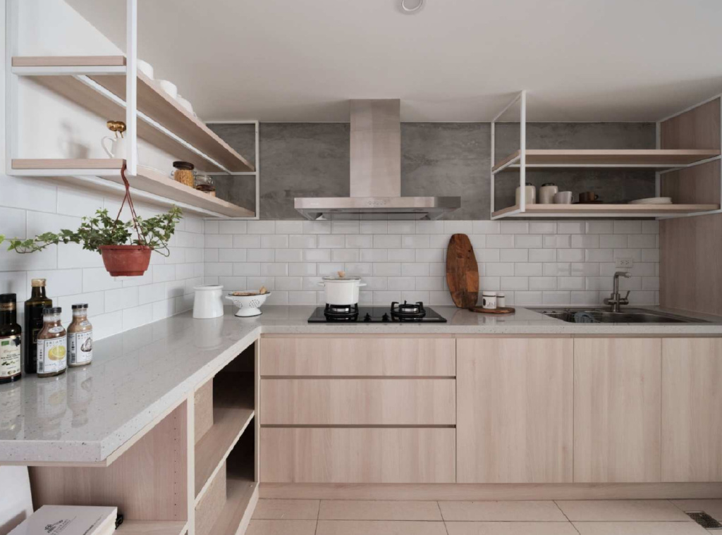 虽说看起来没有整体性,但在日常拿取时,却会特别方便。况且,在厨房有移门隔断的情况下,即便有一些凌乱,也不会对整体效果产生影响。