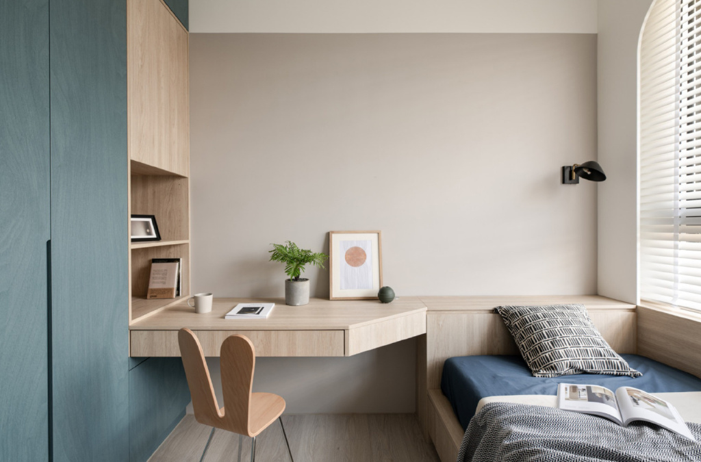 次卧算是一个功能间,所以采用组合式榻榻米布局,不仅能节省空间,还可以让功能性得到完善。无论是办公、学习、休闲、储物,还是当做客房使用,都非常方便。