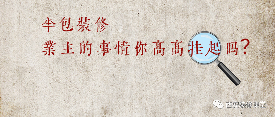 这也是判断装修机构好坏的因素之一,千万不敢找半包就是半包,业主的任何事情和他们无关,这样的装修几乎无法进行下去,否则错误百出,都得业主承担责任。