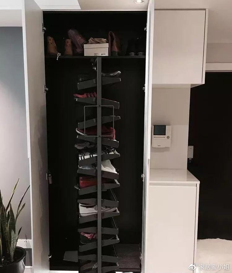 旋转鞋架看起来可以提升空间利用率,让收纳达到翻倍的效果。