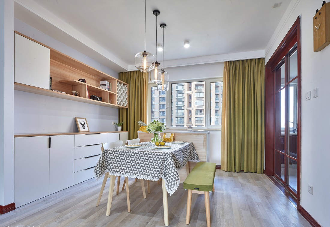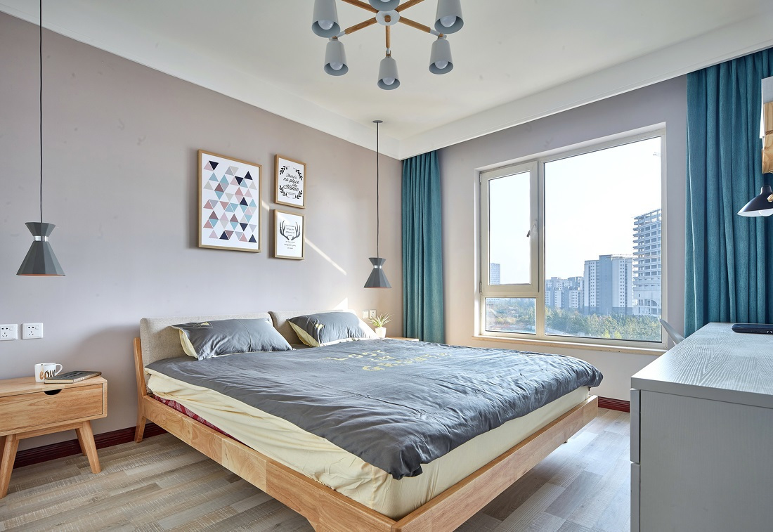 86平北欧风二居室,营造的是一种浪漫的氛围,柔和的灯光、淡淡的色彩搭配,加上飘窗的设计,即使是简简单单的装修,也能给人温馨舒适的感觉。