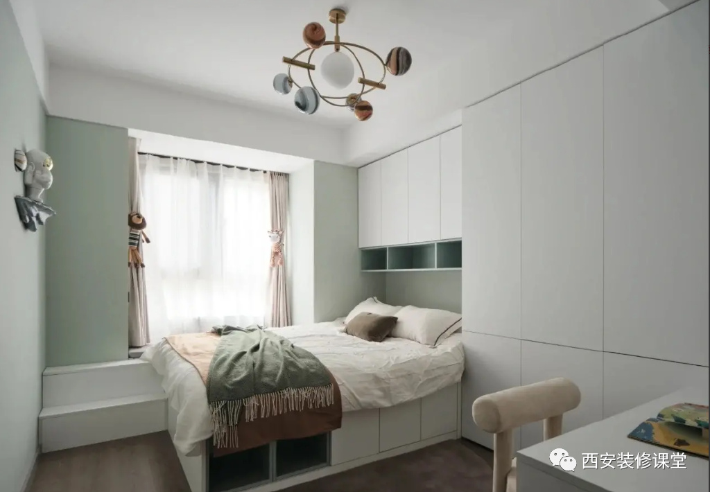 ▲如图如果孩子刚分房睡,千万不要新装修的房子大量人造板定制,此时也不要提什么品牌颗粒板了,这是一间彻头彻尾的毒房子了。什么时候孩子房间可以用人造板,可以参考这篇《全屋定制,该不该一次性做好所有柜子?》必须根据入住人口的状况合理规划。