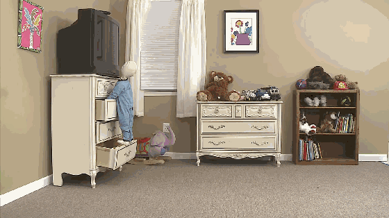 ▲特别是带抽屉的斗柜,这个是熊孩子最容易踩上去的,也是最危险的家具
