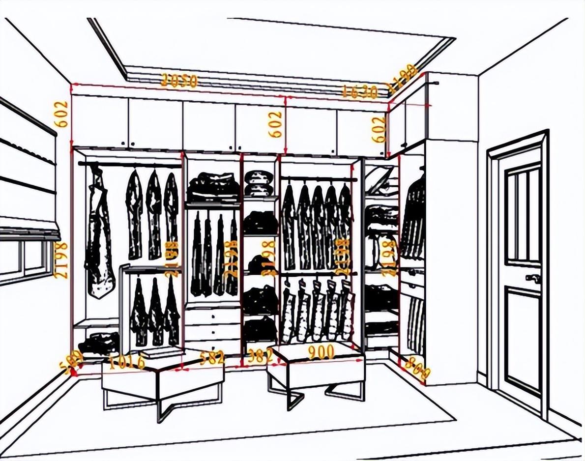 衣柜的设计不合理等待你的就是成堆的衣服堆着放,做过挂衣区分类整齐好方便,下图衣柜尺寸标准,尽量做到顶设计,怎么储物还不用打扫柜顶卫生间,干嘛不做呢?