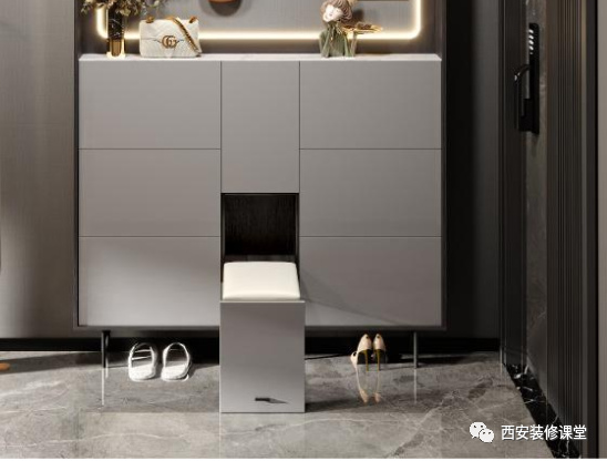 ▲如图这种鞋柜隐藏式换鞋凳老人居住最好不要,因为是隐藏,一般都比较小,而且稳固性并不高,给老人心理产生负担不说,安全性极差