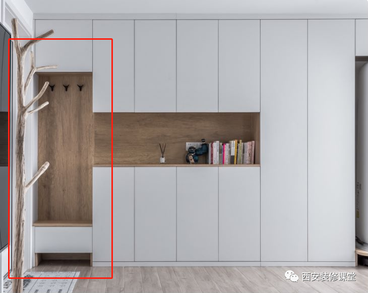 ▲如图老人居住,没有地方放换鞋凳,就可以采用鞋柜定制的做法,保留一个进门换鞋的功能区,而且位置一定在刚进门的位置,宽度大小必须根据老人的身材量身定制,宁愿宽,不能窄,否则非常鸡肋