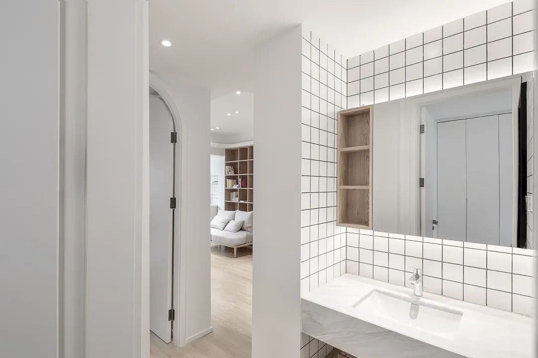 设计成三功能的「独立分区」,在三代人一起生活的空间内,预设洗漱功能的分开可以最有效的避免生活中的尴尬,也是未来引导此类案例设计的范本。