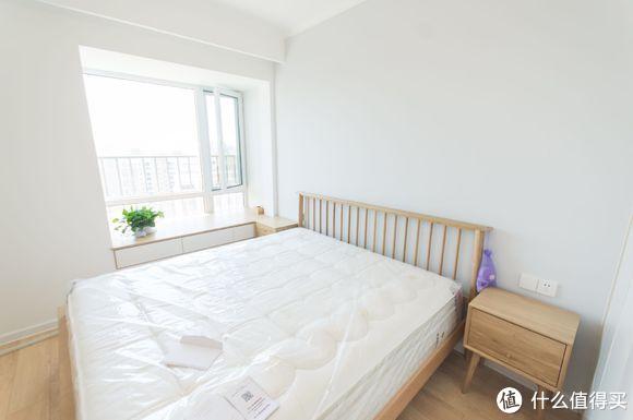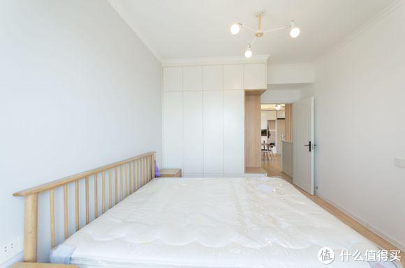 卧室简洁敞亮干净舒适,白橡木的床与整体风格很配,和客厅一样只差安装窗帘了。衣柜木工师傅现场直接做,整体效果还不错,空间浪费也不大。