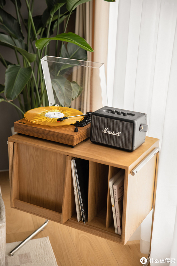 还有家具的选择,尽管没有大茶几,但还是选择了一张原木小茶几,靠近窗户摆放落地书柜,别看他们都小小的,但正是利用比例缩放才让空间“显得更大”。