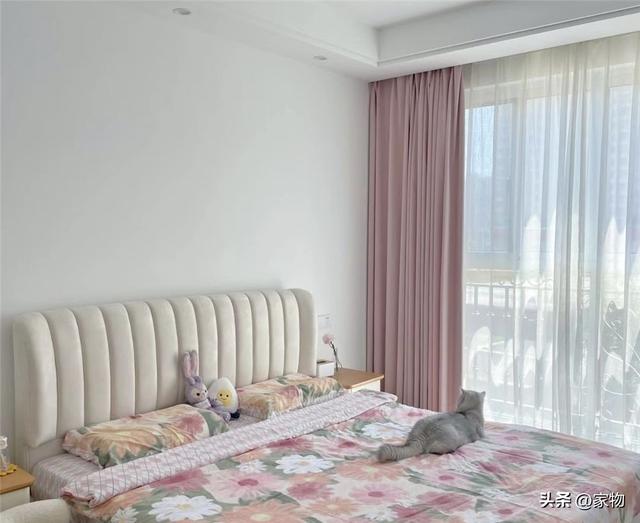 而主卧室则宽敞很多,且自带一个小小的阳台,阳光透过窗扇照入室内,给这间阳台带来了充足的自然光,配合家中的白色调装修,看起来别提多清新自然了。