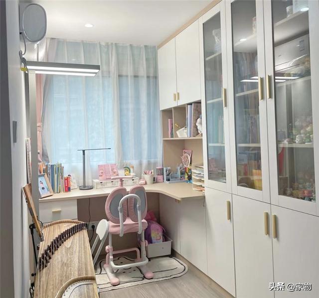 家里有主卧和次卧两间卧室,因为暂时还没有孩子,所以次卧放上一组打鬼子,融合书桌变成工作区,日后如果有孩子的话,应该会把这处空间改成儿童房。