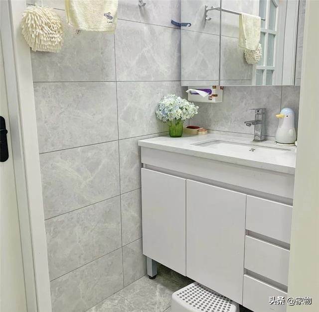 家里的卫生间洗手台外移,做成干湿分区,同时,早晨洗漱、沐浴的时候夫妻俩也可以分割空间不会互相影响到,细节设计还是蛮贴心的。