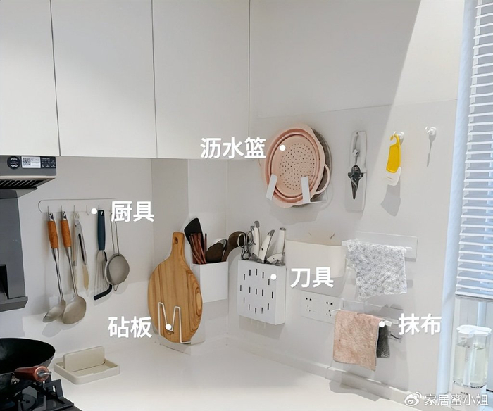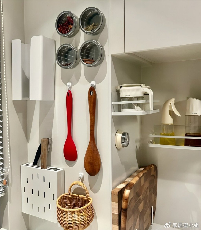 大家可以将厨房用到的小物件都放在里面,实现一物多用。