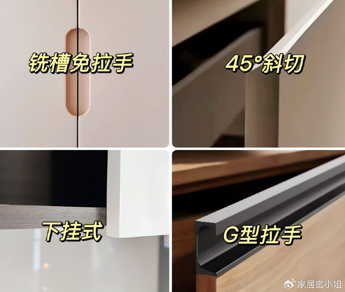 现在人都注重美观,在装修时橱柜都没有把手了,但我发现依然有人还采用传统的设计,觉得柜子要是没有把手,来回开关肯定麻烦,但你不想想,有把手后缺点更多: