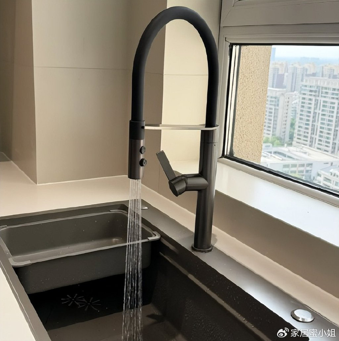 厨房装修不要做普通水龙头了,现在都流行去做万向水龙头,它是采用抽拉的设计,更好用!