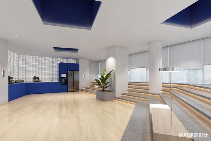 科技公司装修设计包括大堂、办公区、茶水间、餐厅、会议室等的装修设计。