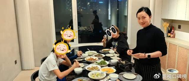 餐桌上摆放着很多食物,很丰盛,不排除是陶虹亲自下厨。