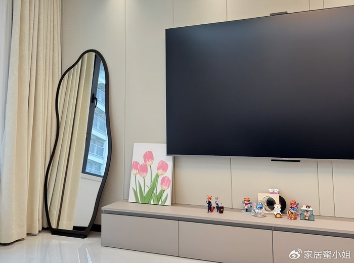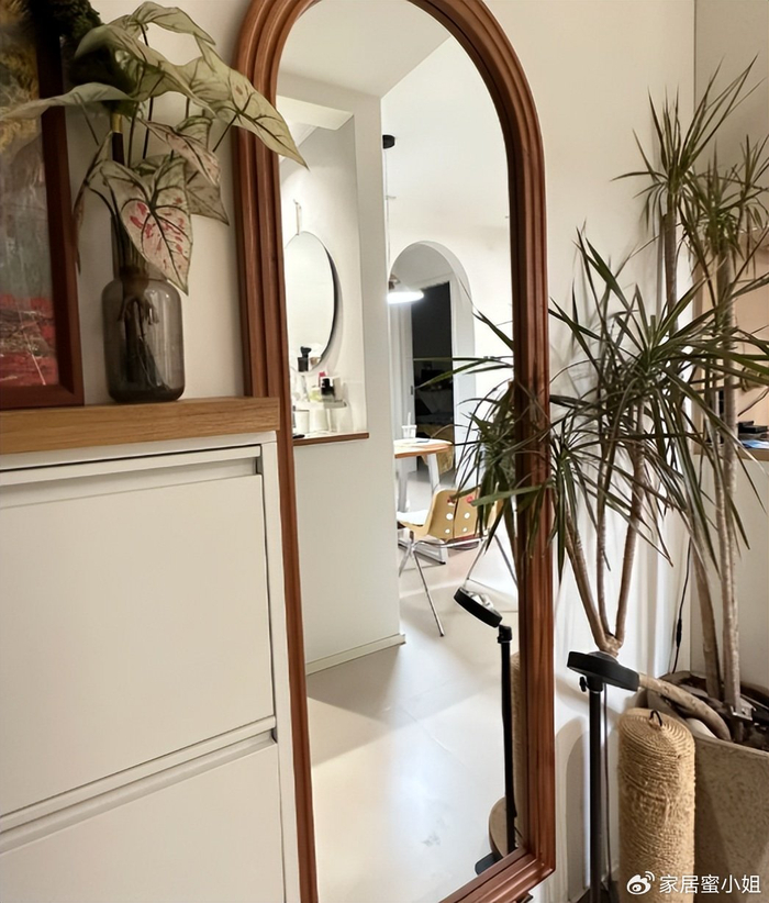 有的人就顺手把全身镜放在客厅中,每天照镜子都很便捷,搭配上一个装饰地毯,这不妥妥网红的家吗?