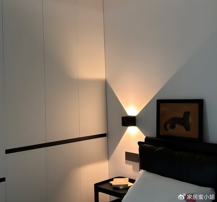 不如在床两边的位置装上小壁灯,亮度很温馨,还不刺眼,每天睡觉打开壁灯即可。
