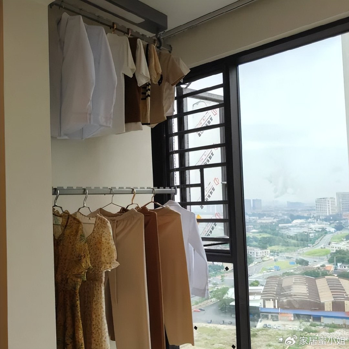 这种晾衣架是双层的设计,不占地方,晾晒也方便,比普通的隐藏晾衣架实用。