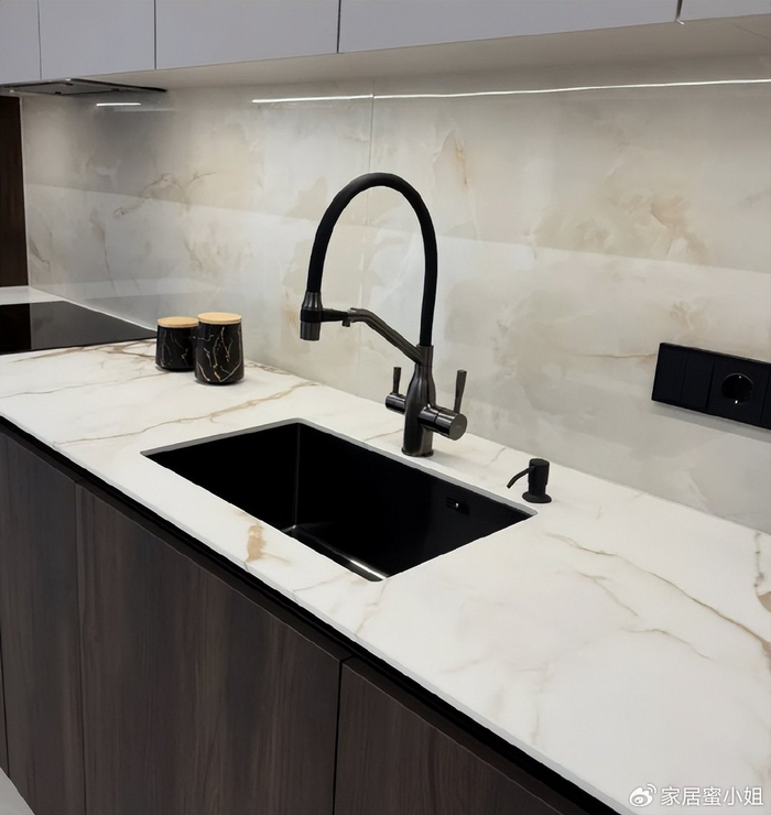 我家厨房台面,做的是岩板材质的。